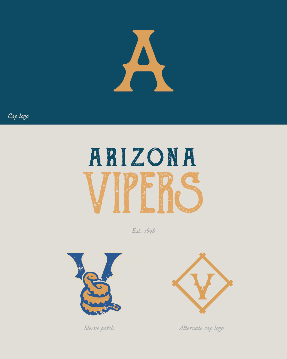 Retro rebranding concept for MLB's Arizona Diamondbacks, imagining what they might have looked like if they'd been founded during the Deadball Era (and renamed VIPERS).