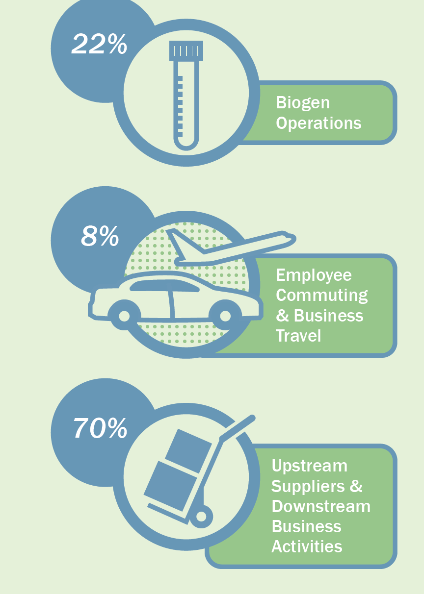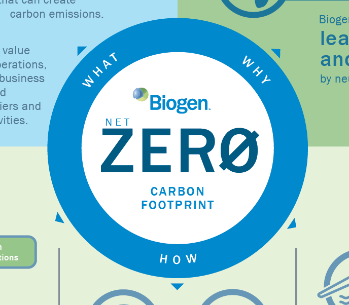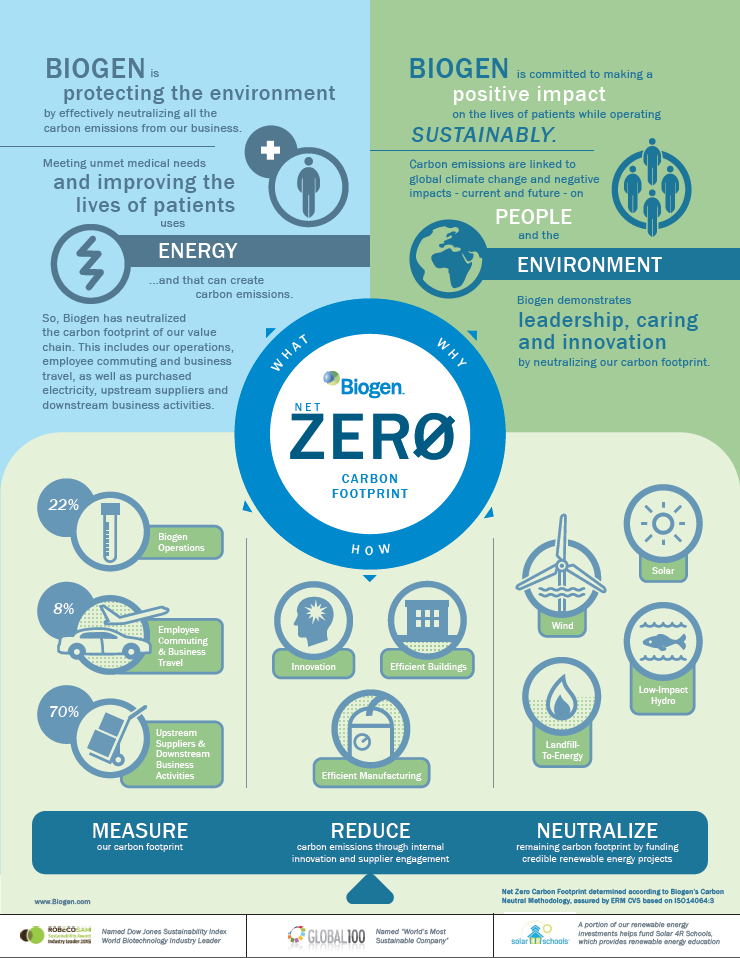 Infographic detailing the successful efforts of our biotechnology client Biogen to effectively neutralize their carbon emissions, for use in communicating the company's .
