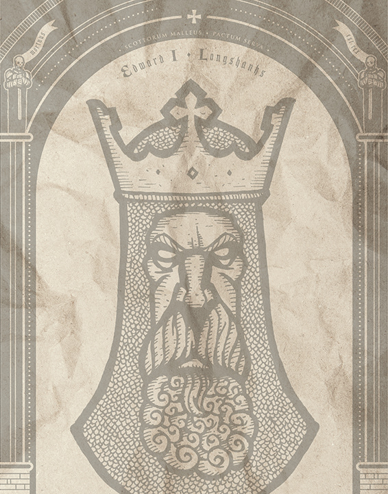 Most famous today from Braveheart, he spent years subjugating Wales and Scotland. On crusade he disarmed and killed an assassin in his bedchamber, then spent weeks recovering from a poison knife. Died many years later on the road to Scotland of dysentery, in 1307 at the age of 68. His Latin epitaph translates as, "Hammer of the Scots."