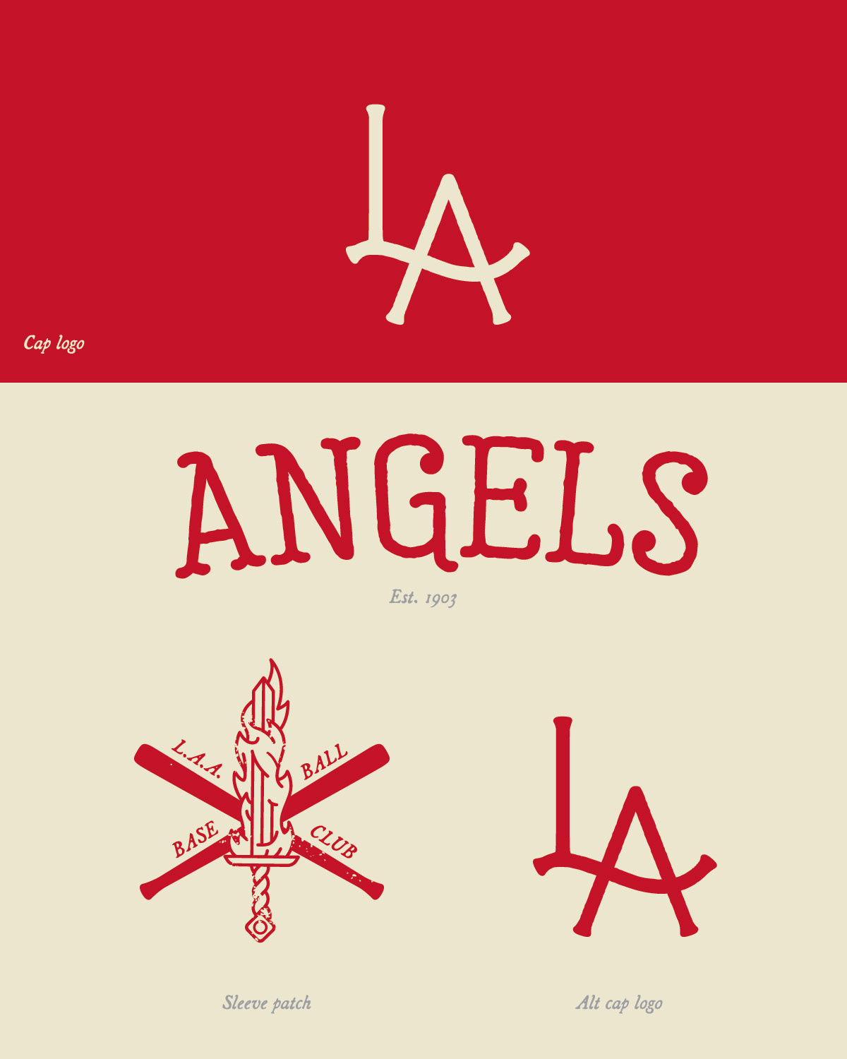 Retro rebranding concept for MLB's Los Angeles Angels, imagining what they might have looked like if they'd been founded during the Deadball Era or as part of the Negro Leagues.