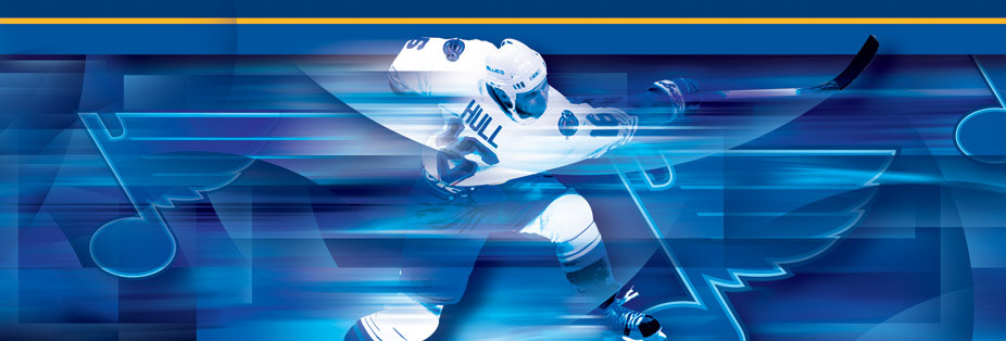Scottrade Center, home of the NHL's St. Louis Blues, wanted to commission a new look for the concourse area where fans mingle before games and during intermissions. The challenge was to use the client's aged, grainy, and often out-of-focus images in a sleek, contemporary style.