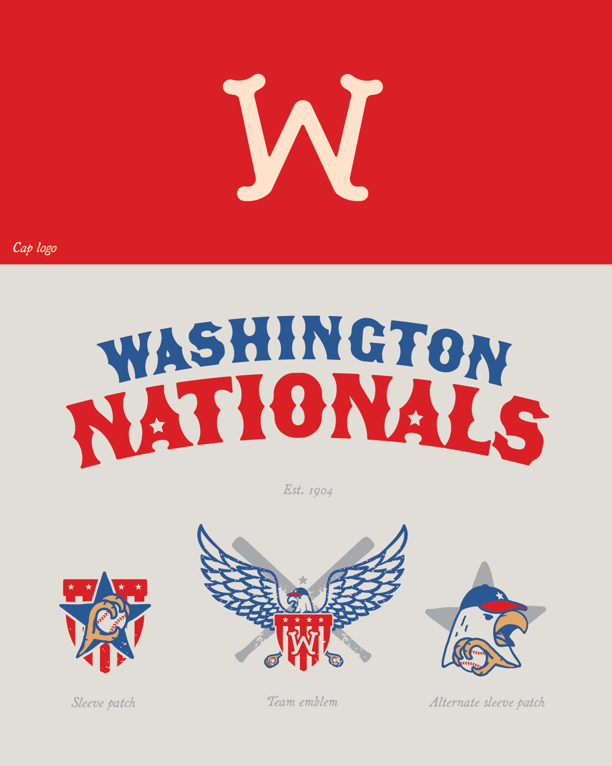 Retro rebranding concept for MLB's Washington Nationals, imagining what they might have looked like if they'd been founded instead of the Senators during the Deadball Era.